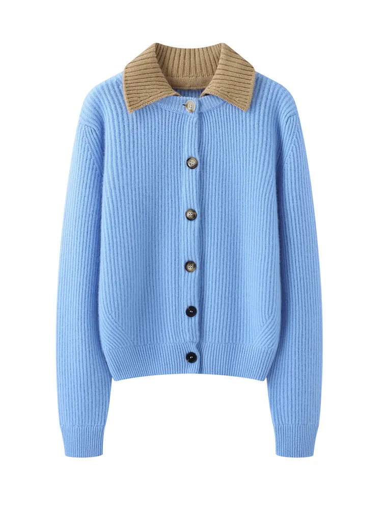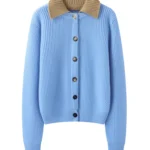 Blue Pure Cashmere Cardigan – Detachable Polo Collar
