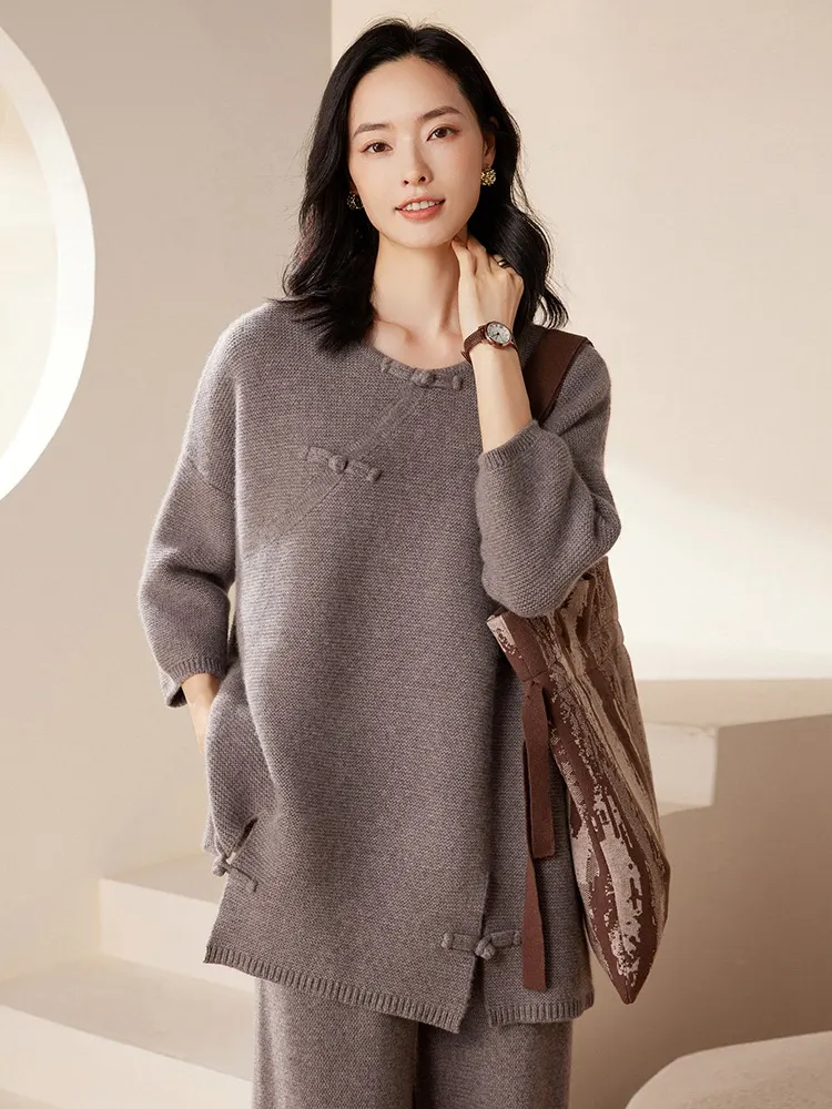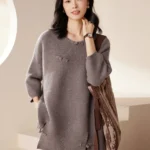 Women’s Cashmere Long-Sleeve Knitted Top – Gray