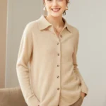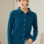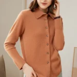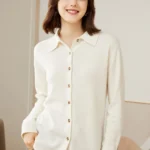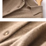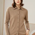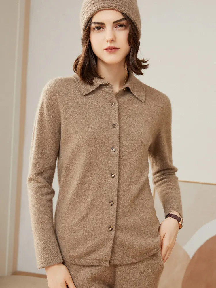 Women’s Minimalist Solid-Color Pure Cashmere Shirt Cardigan with Polo Collar