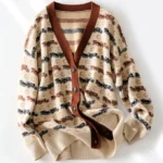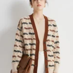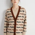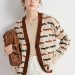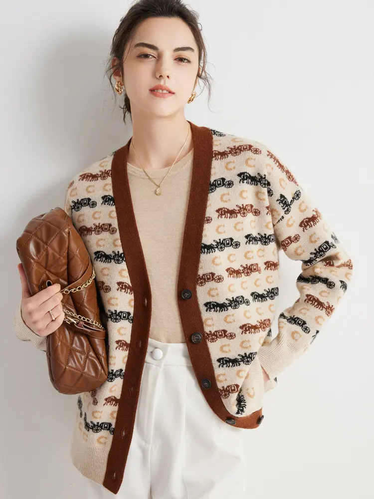 Women’s Pure Cashmere V-Neck Cardigan with Car Motif